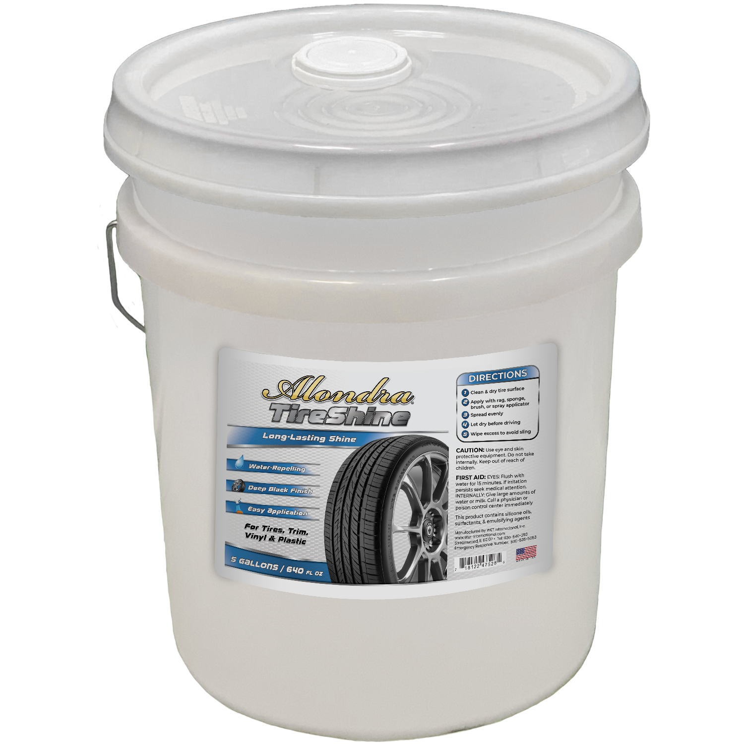 It produces a slick, durable Water resistant shine. It is easy to apply to tires by spray or brushing. This product does not contain alcohol or other flammable chemicals eliminating the need for special storage cabinets. The product is Thixotropic, so even when it is a thick gel, its viscosity decreases when stressed by pumping or shaking. This is why it can be applied by spray to the tires. On leather, plastic dashboards or vinyl, it can be applied with a damp rag. This product can be diluted with water (1:1) for light applications on leather, plastic and vinyl. Even when it is water based (the advantage of being non-flammable) the emulsifying and wetting agents in the formula allow the silicone oils to attach strongly to the tires. The product does not wash off easily.
